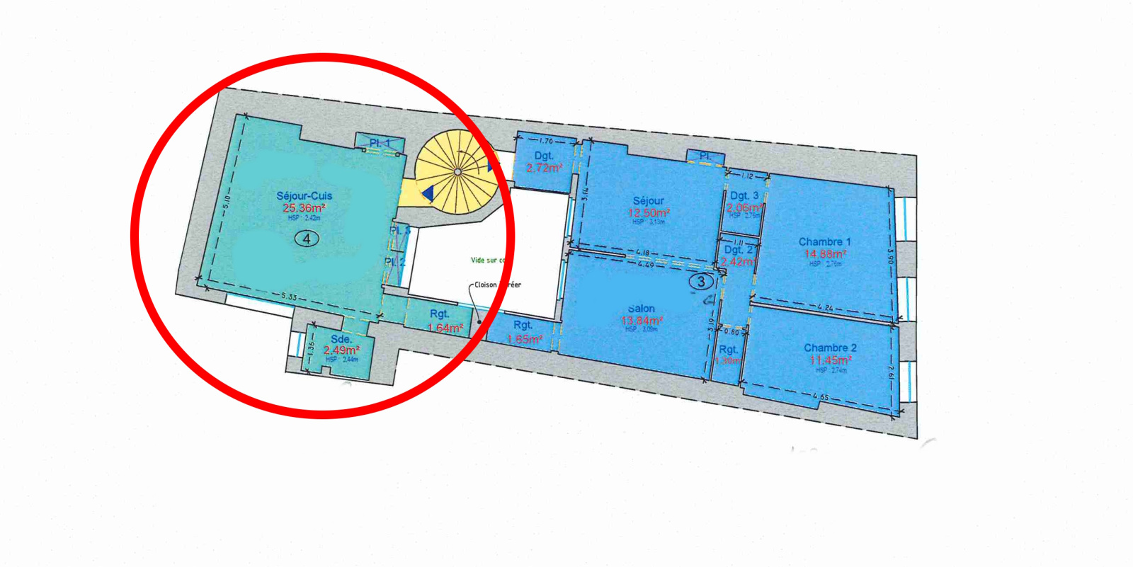 Au 1er étage d'un immeuble en copropriété, un studio à rénover complètement d'environ 29.49 m²