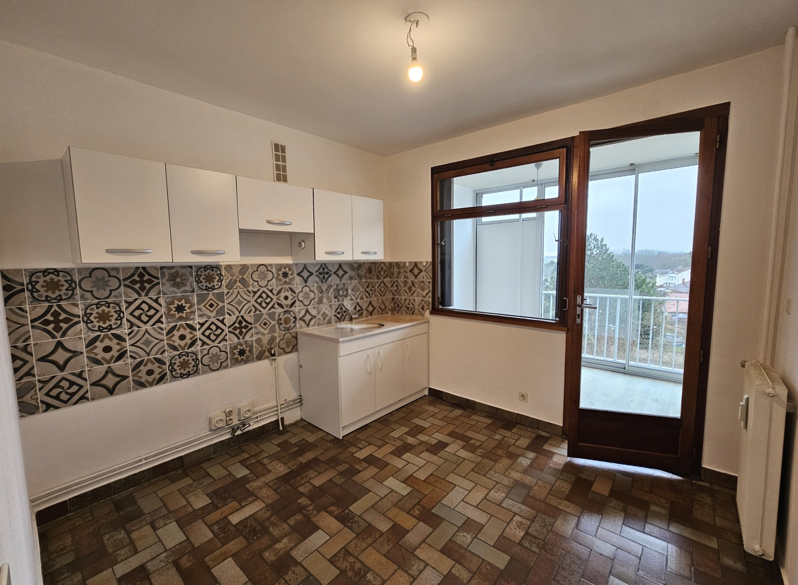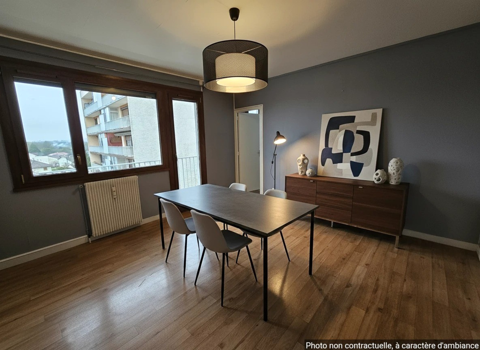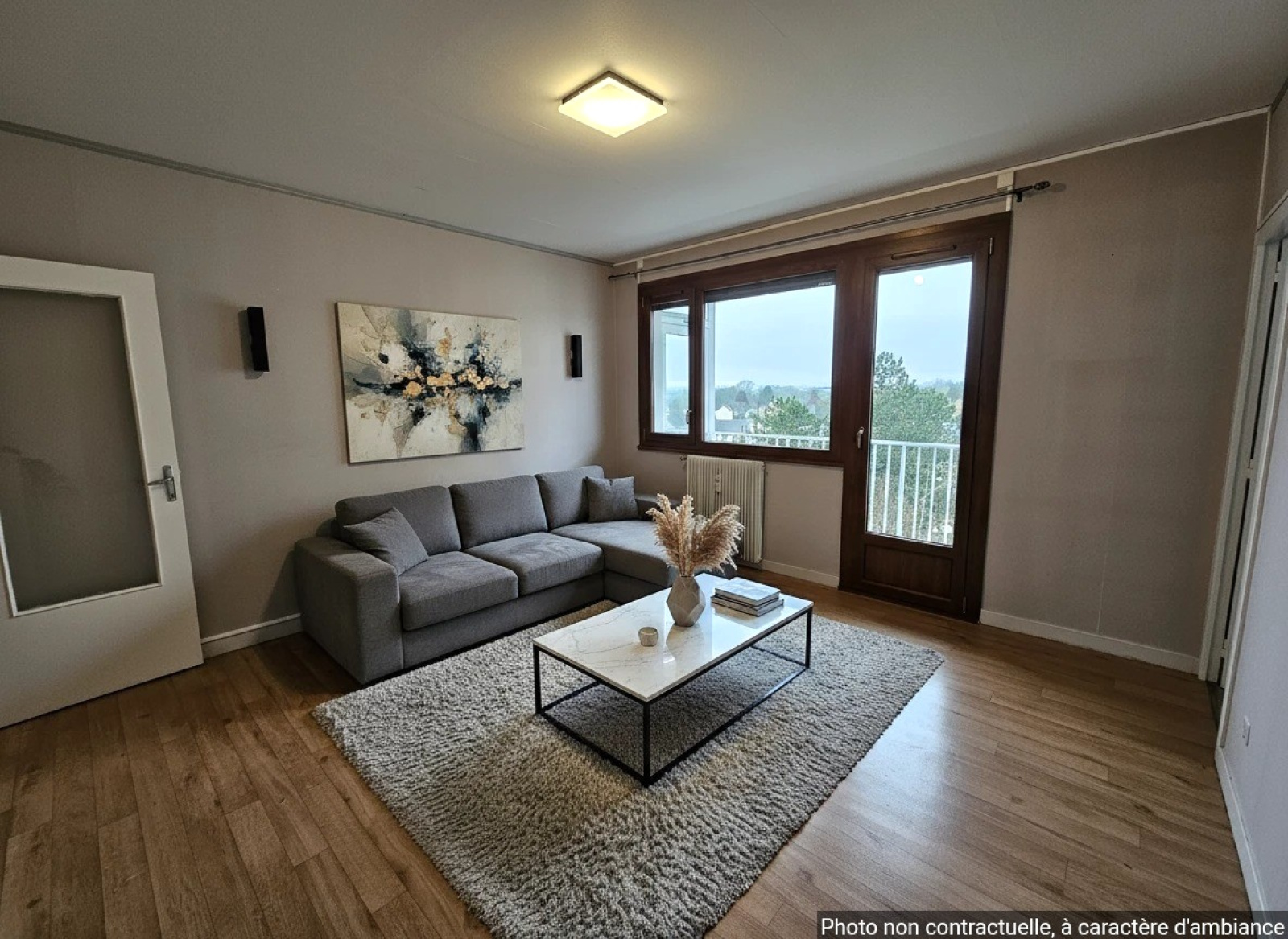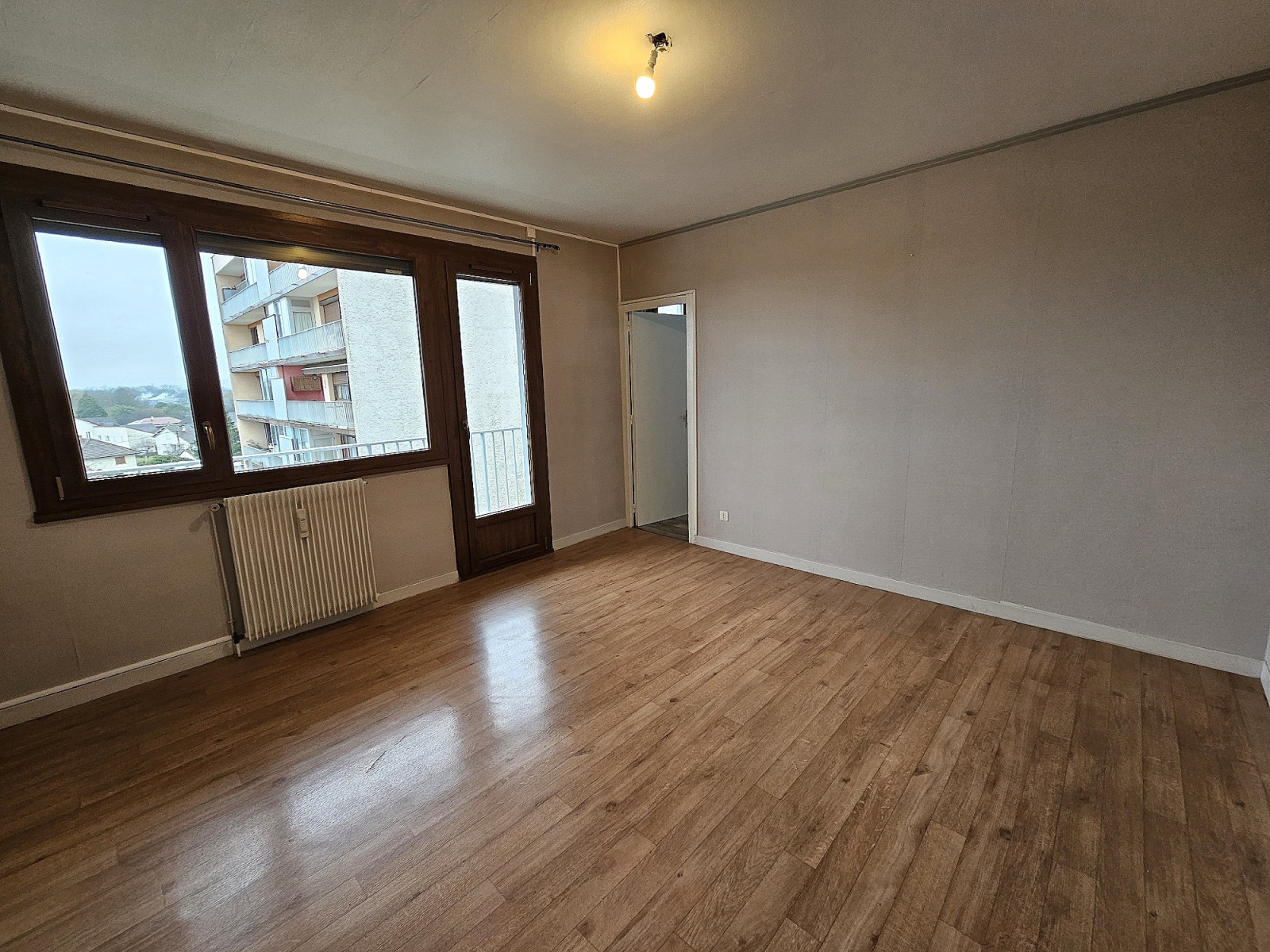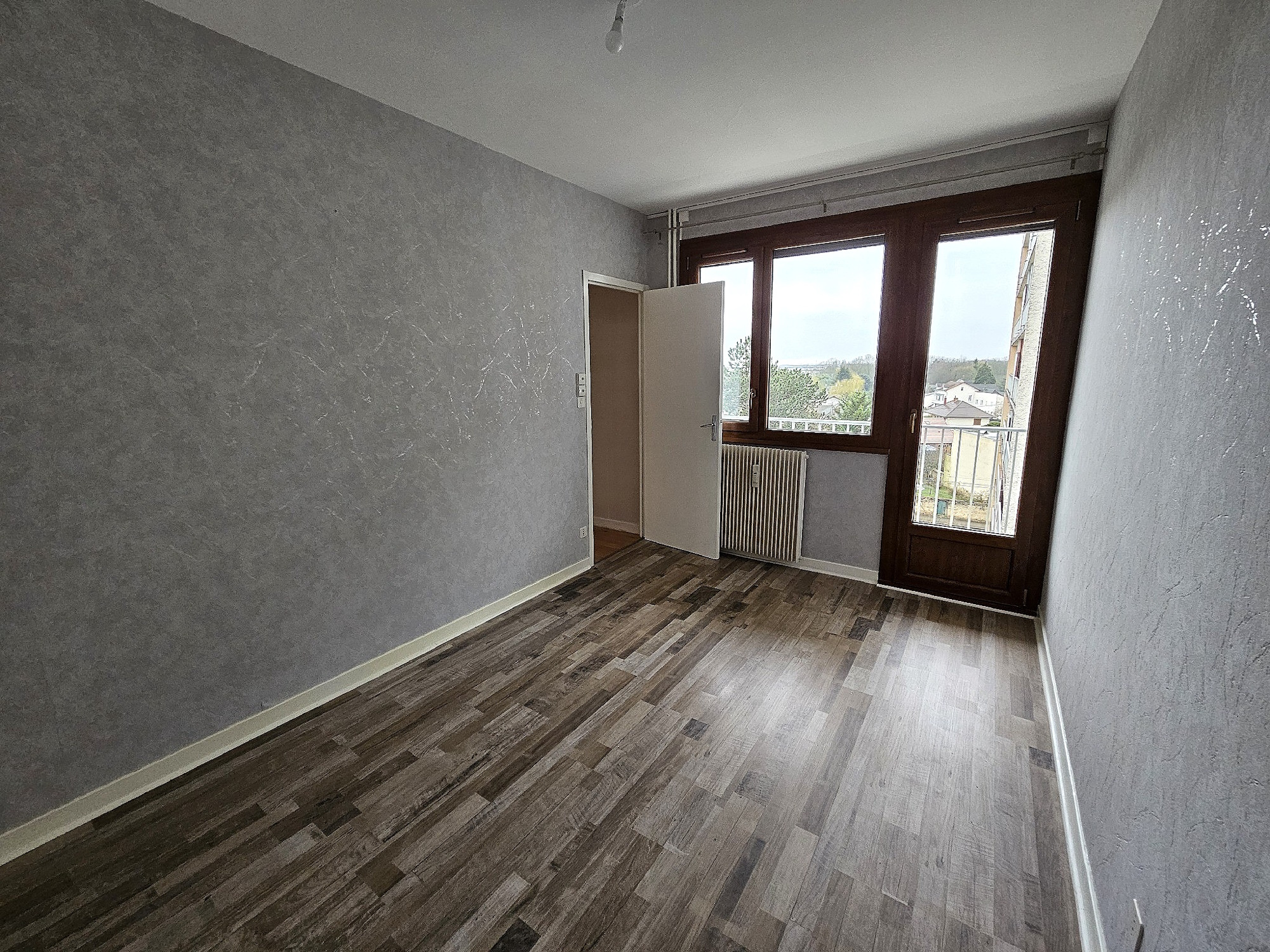 Dans un immeuble en copropriété, au 5eme étage avec ascenseur, un appartement Type 3 comprenant entrée avec placard, salon-séjour, cuisine, 2 chambres, salle de bains, w-c séparé, loggia et balcon.