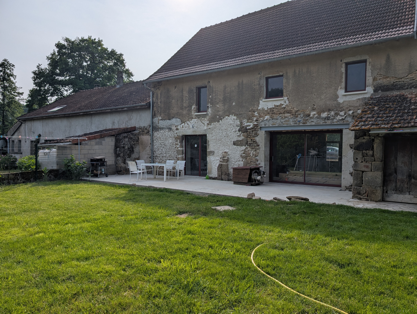 REF : 4902 - 15 MIN D’ARNAY-LE-DUC Située au calme dans un environnement rural, cette maison d'une surface habitable de 162,8 m² offre de belles prestations à valoriser. À l’étage, entièrement refait en 2020-2021, vous trouverez une magnifique pièce à vivre d’environ 50 m², deux chambres, une salle de bain, un WC séparé, une isolation performante et des menuiseries en double vitrage. Le rez-de-chaussée est prêt à être finalisé : chauffage au sol et chape liquide déjà réalisés, avec une suite parentale prévue (arrivées pour salle d’eau et WC), ainsi qu’un espace cuisine/séjour. Le bien comprend également une grange de 44 m², une dépendance attenante de 48 m², un jardin entretenu, une terrasse béton à aménager et un petit parking privatif. Fosse septique aux normes. Parfait pour un projet familial ou une résidence secondaire avec fort potentiel. PRIX : 160 000 € FAI Agence République Transactions Arnay-le-Duc, agent commercial EI Marie Odile BUREAU 06 36 19 47 06 RSAC Dijon n° 911 219 509 Classe énergie C 134 Classe climat D 31 Les informations sur les risques auxquels ce bien est exposé sont disponibles sur le site Géorisques : www.georisques.gouv.fr.