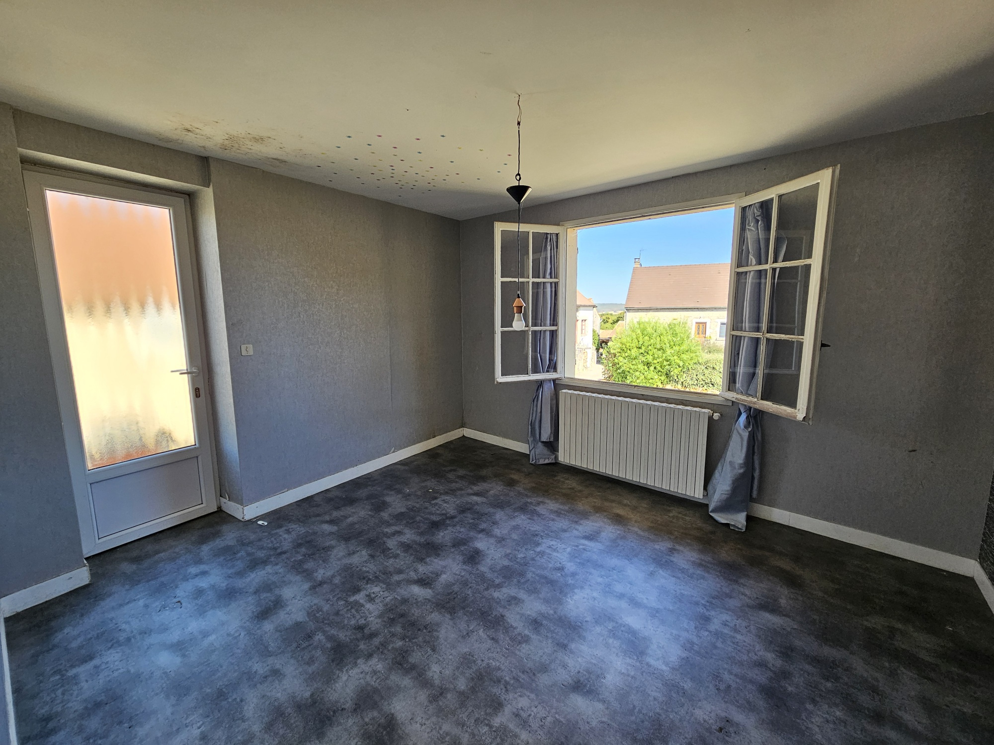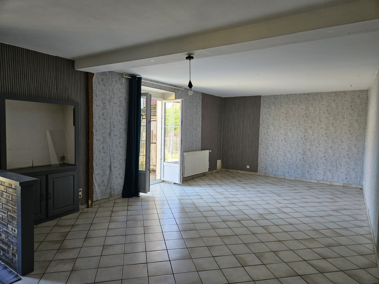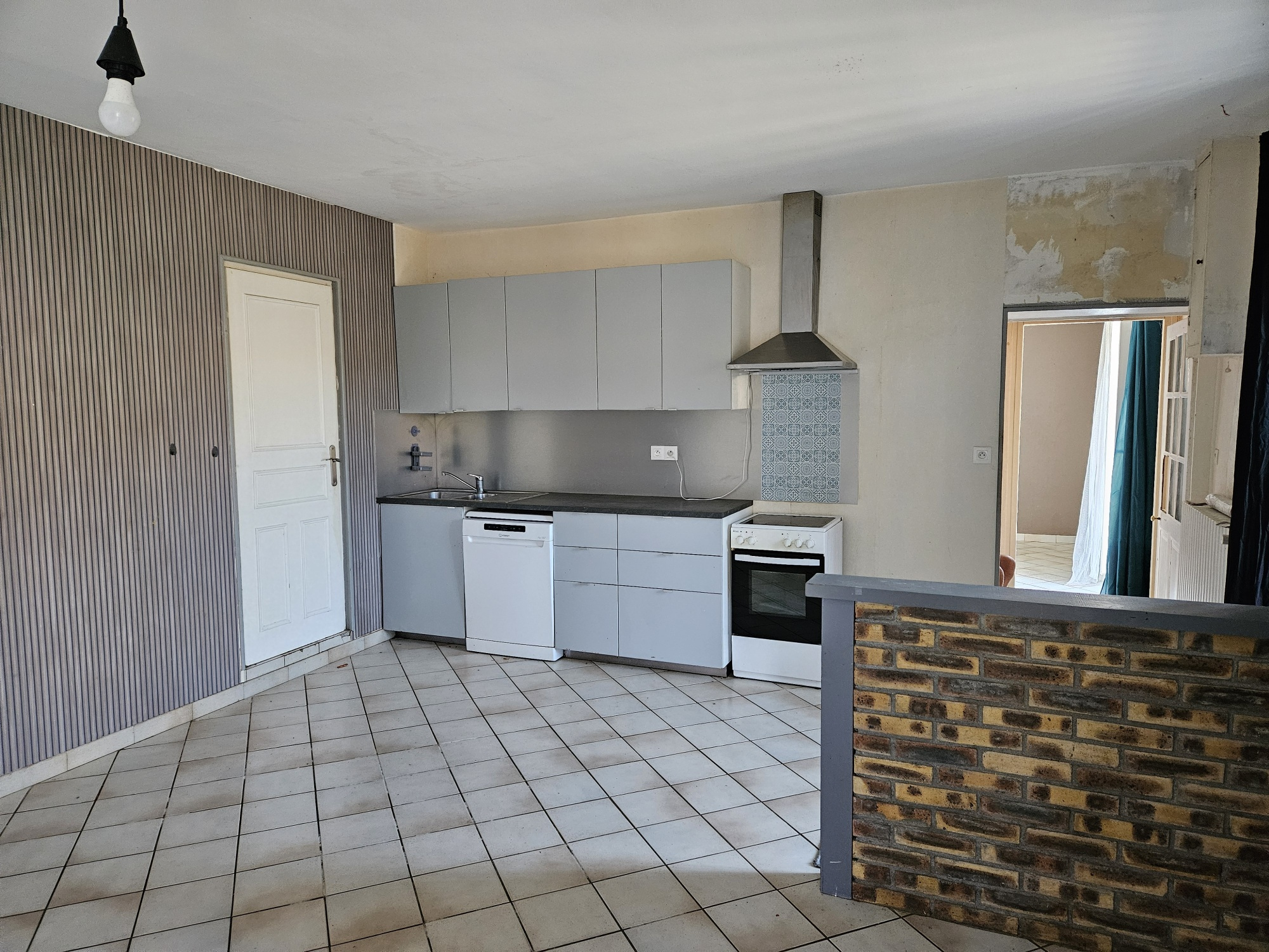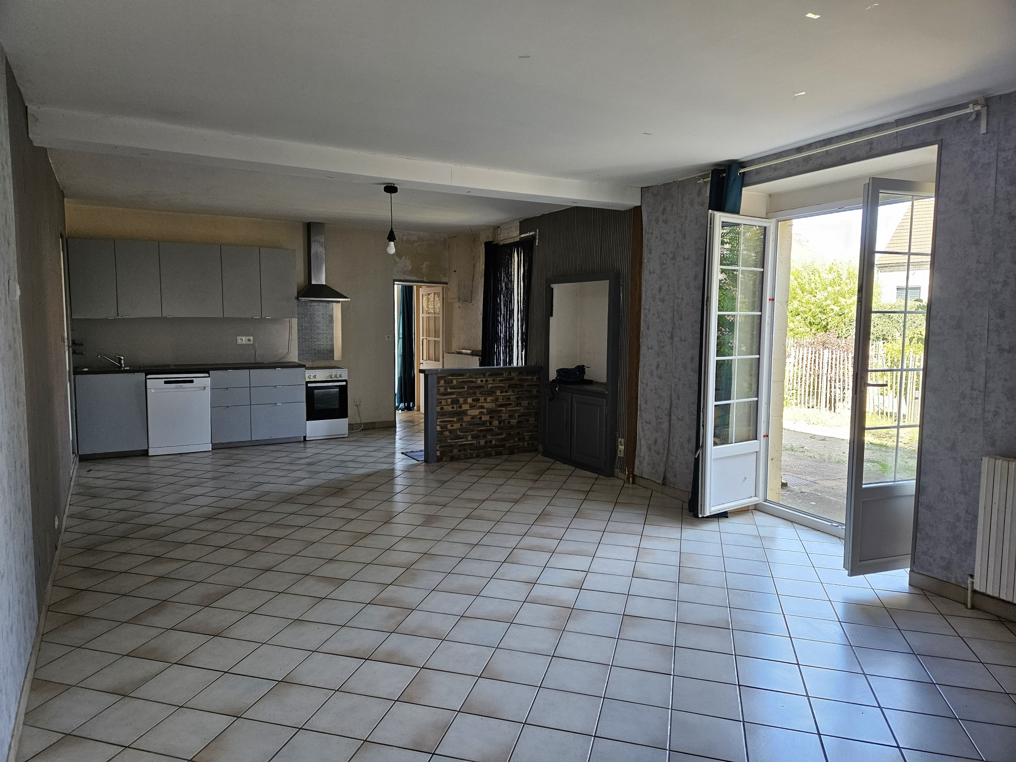 Maison ancienne à rafraichir d'environ 121 m² habitables comprenant au RDC : salon-séjour ouvert sur cuisine, une chambre, une salle d'eau, w-c séparé, chaufferie-buanderie, atelier.
