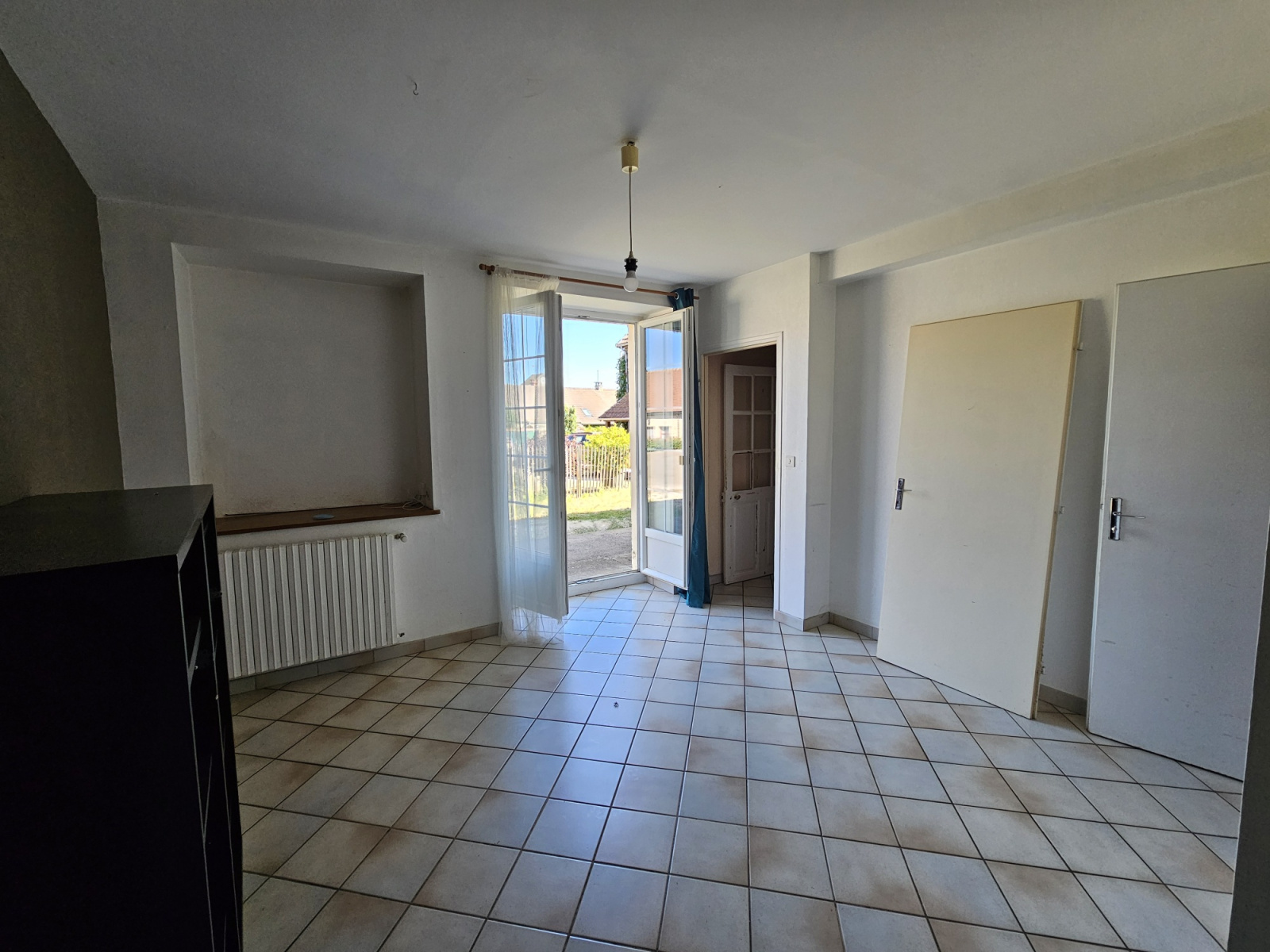 Cour privative fermée devant et une cour à l'arrière.