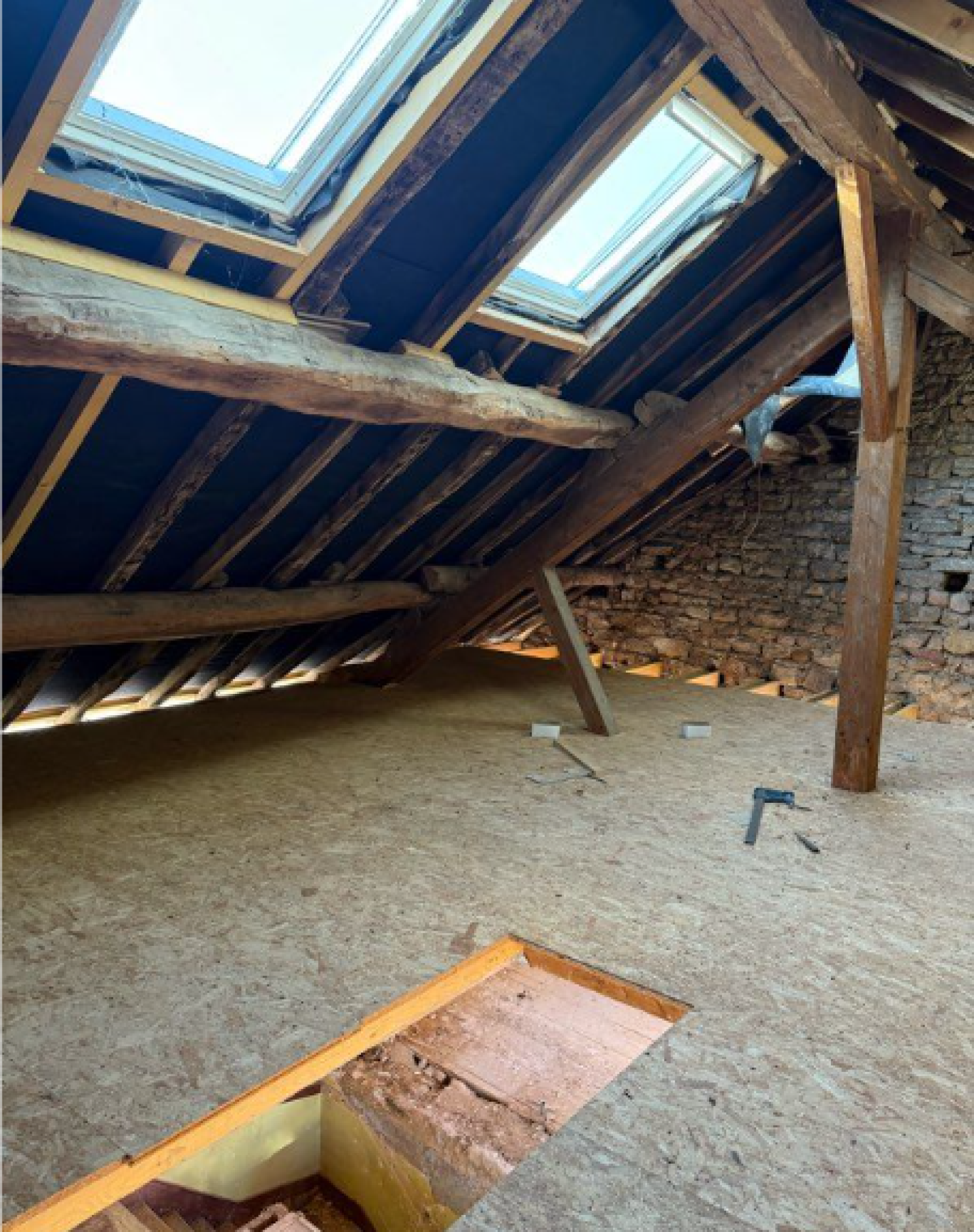 - et le grenier aménageable (d'environ 20 m² au sol) où des vélux ont été installés.